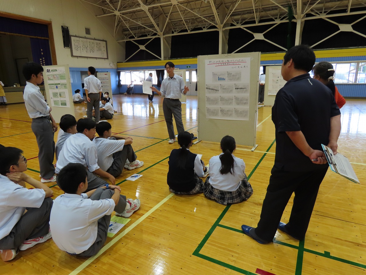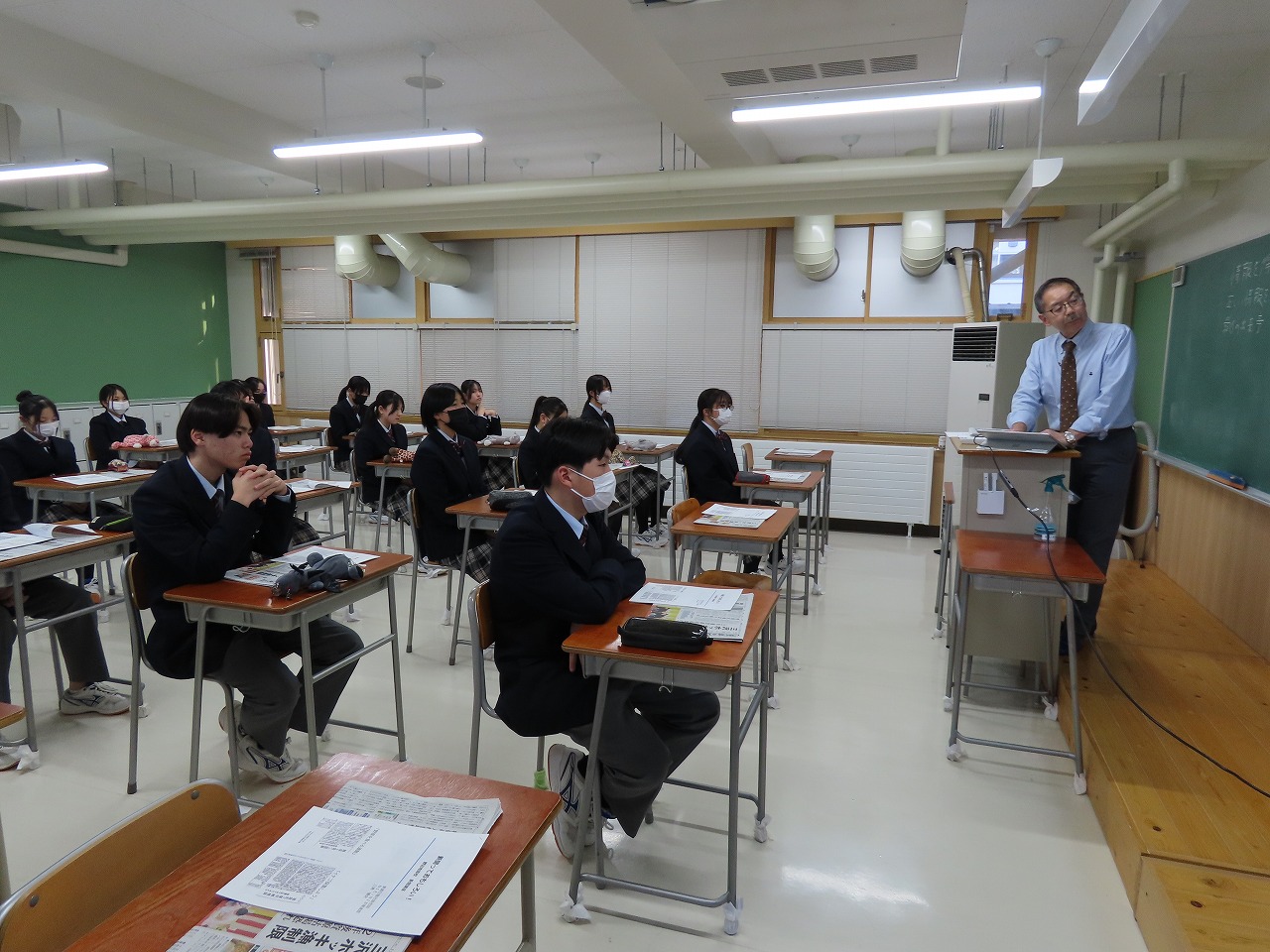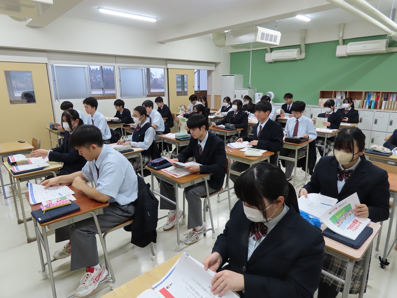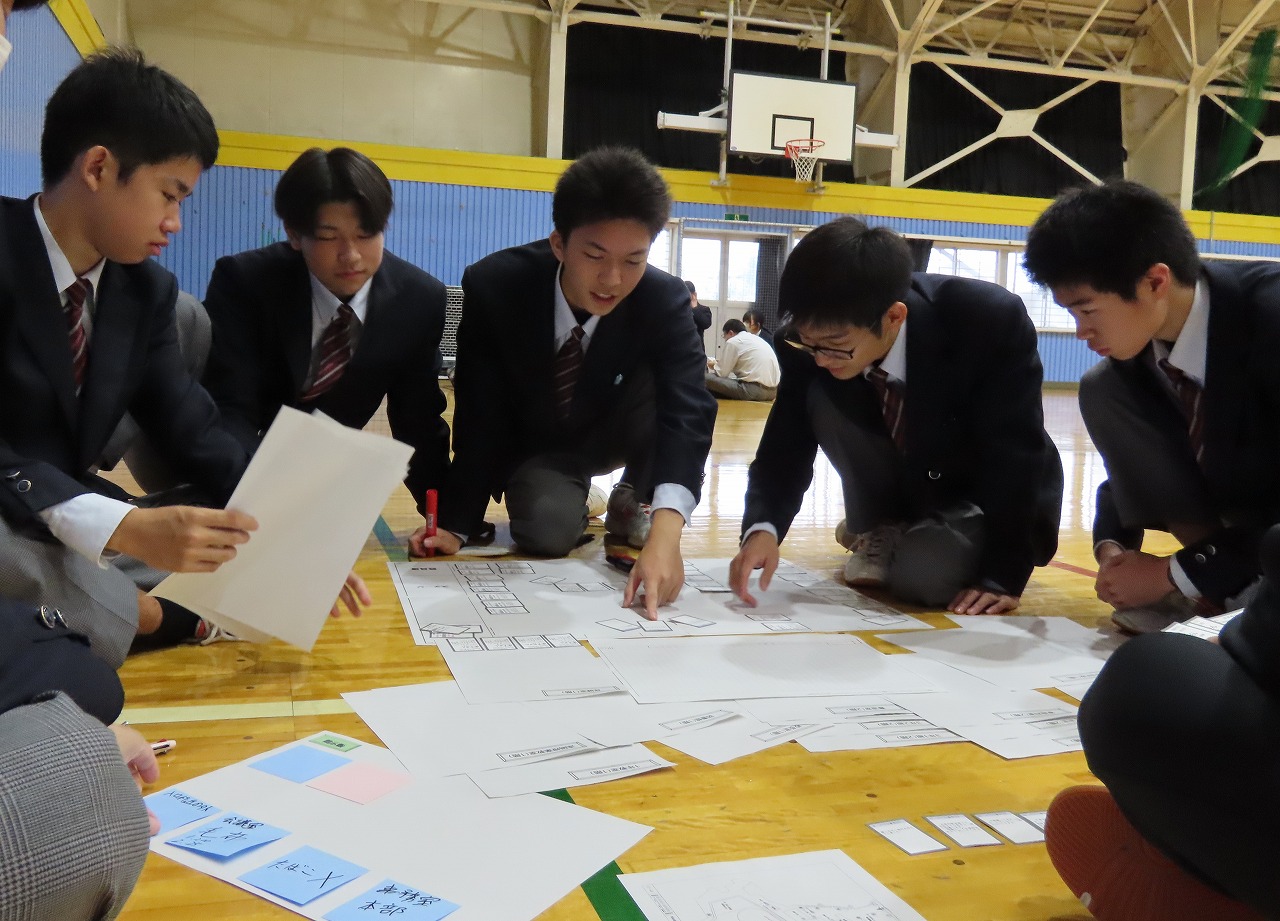 な探究の時間の地域探究の発表など野辺地高校を紹介し、その後は授業を体験していただきました。