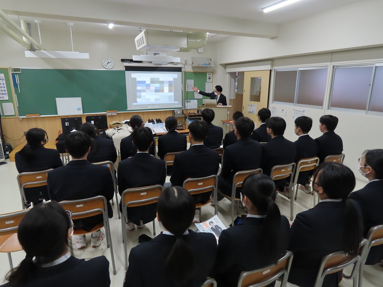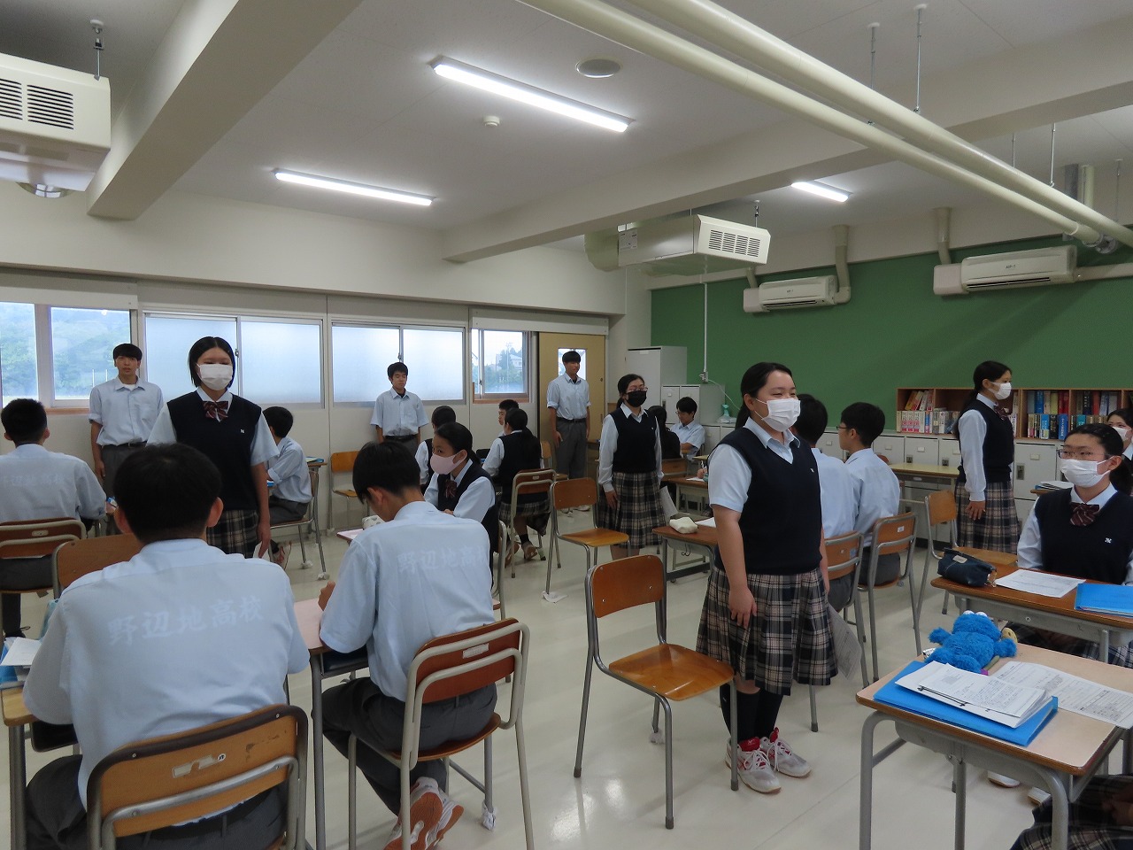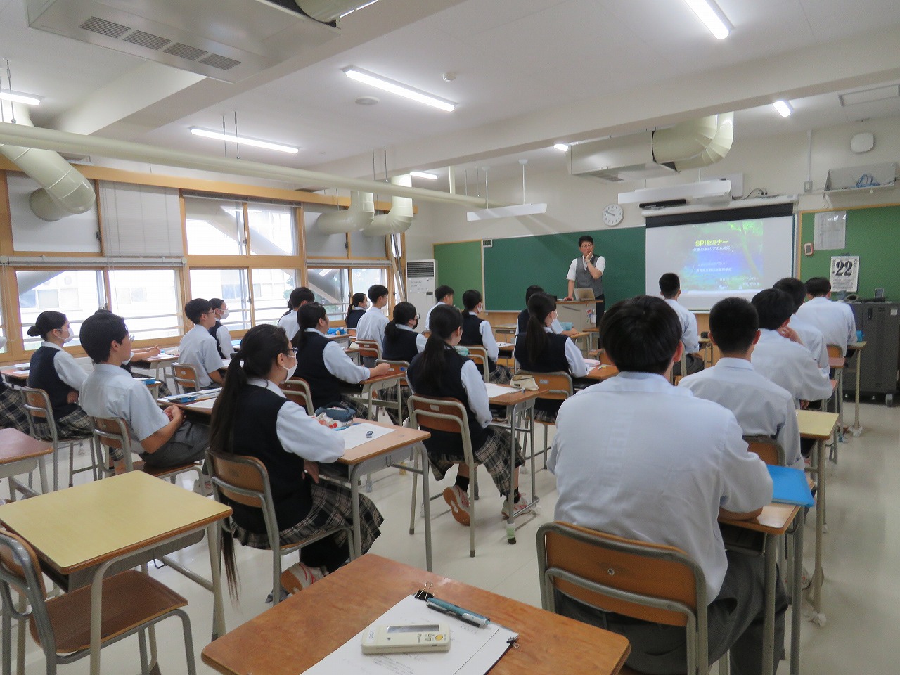 な探究の時間の地域探究の発表など野辺地高校を紹介し、その後は授業を体験していただきました。