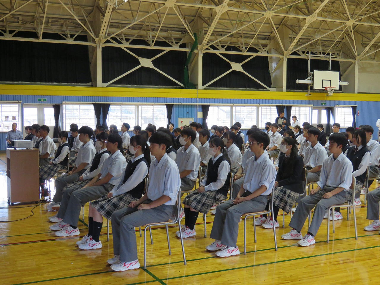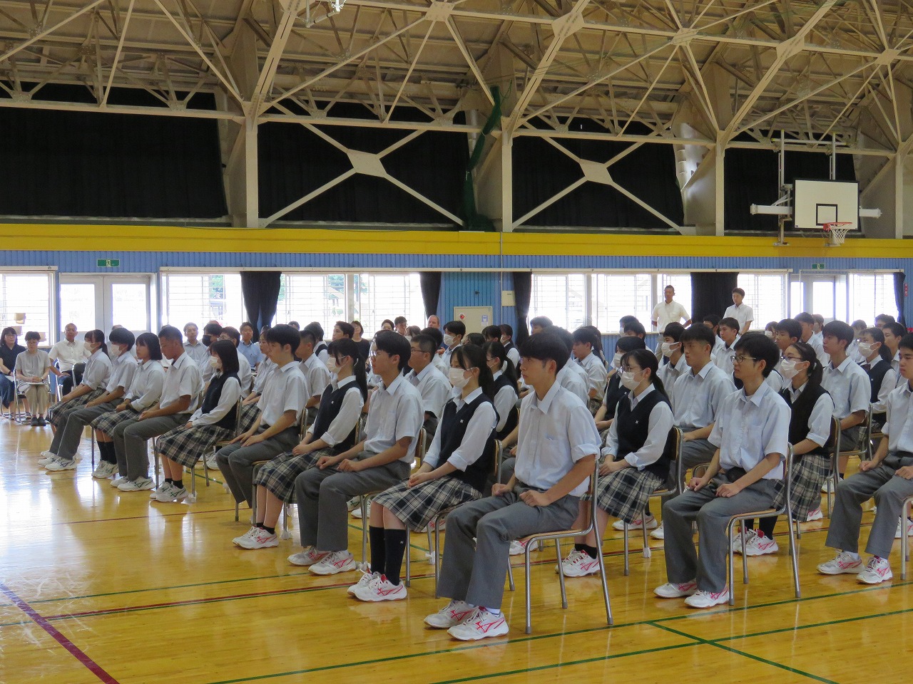 本校第二体育館にて2学期始業式が行われました。暑い日が続く中生徒の体調が心配でしたが、