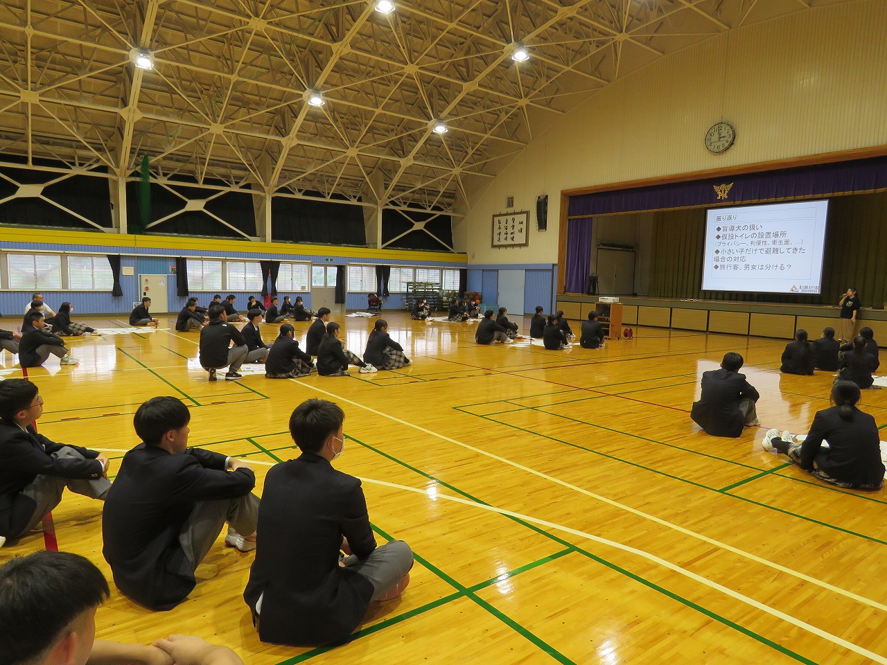 総合的な探究の時間に避難所運営訓練Ⅰを行いました。今年は野辺地町と連携して野辺地町総合
