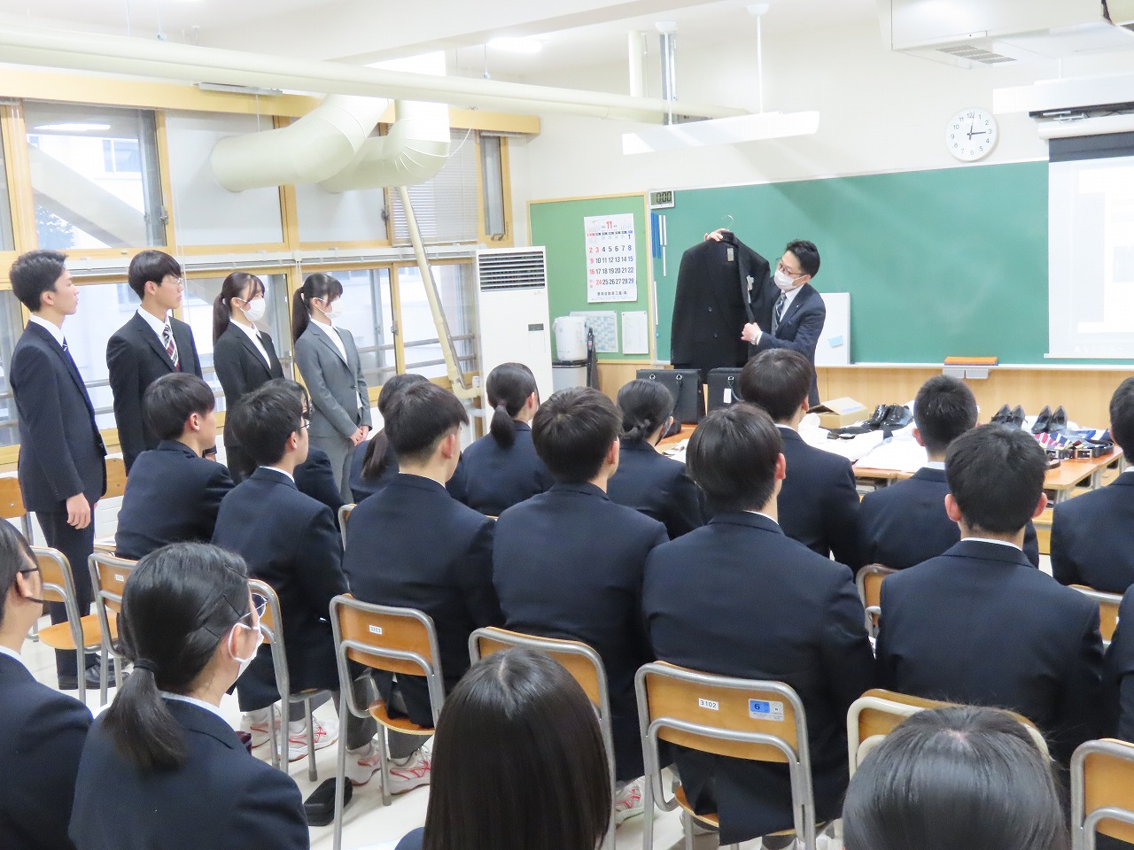 本校3学年の生徒を対象に着こなしセミナーを行いました。株式会社コナカから講師をお招きし、
