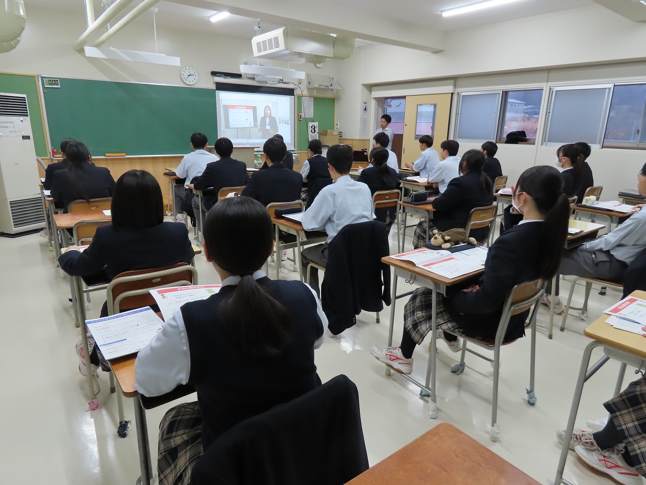 本校1学年を対象に性教育講話が行われました。上北地区学校医の方を講師としてお招きし、