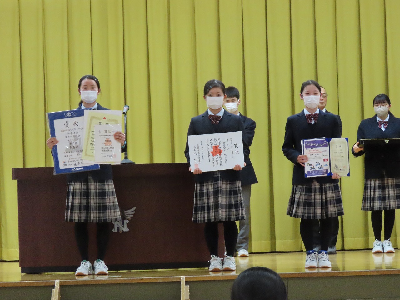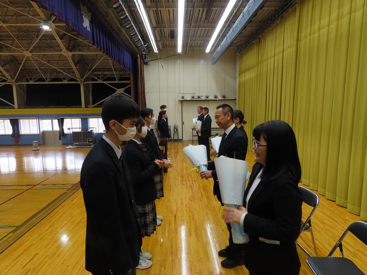 3月に行われた大会で入賞した生徒が表彰されました。その後修了に伴う1か年の表彰式も