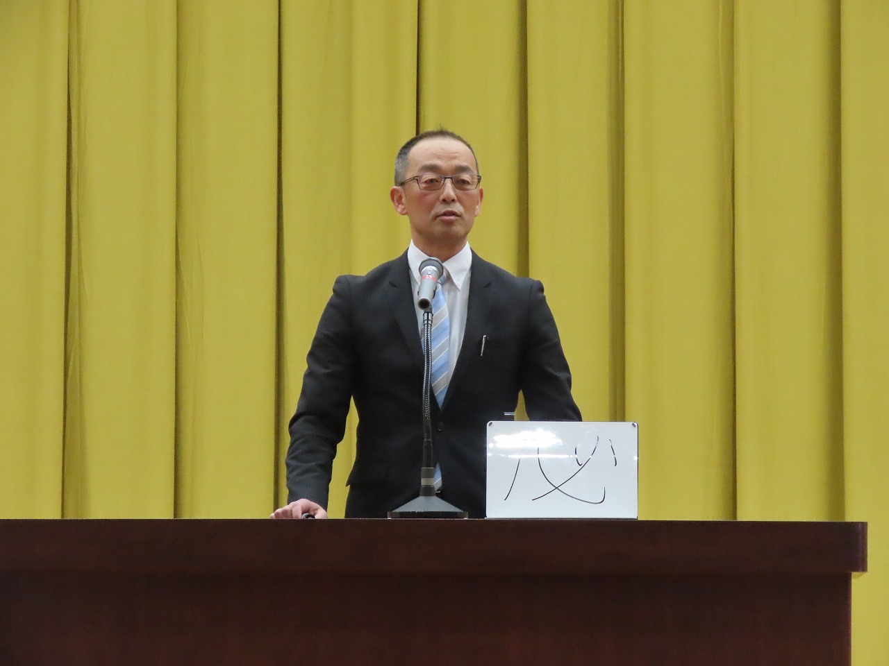 修了式が挙行され、校長先生の式辞の後校歌を斉唱しました。離退任式も行われ、3名の職員