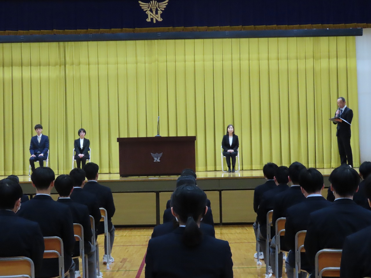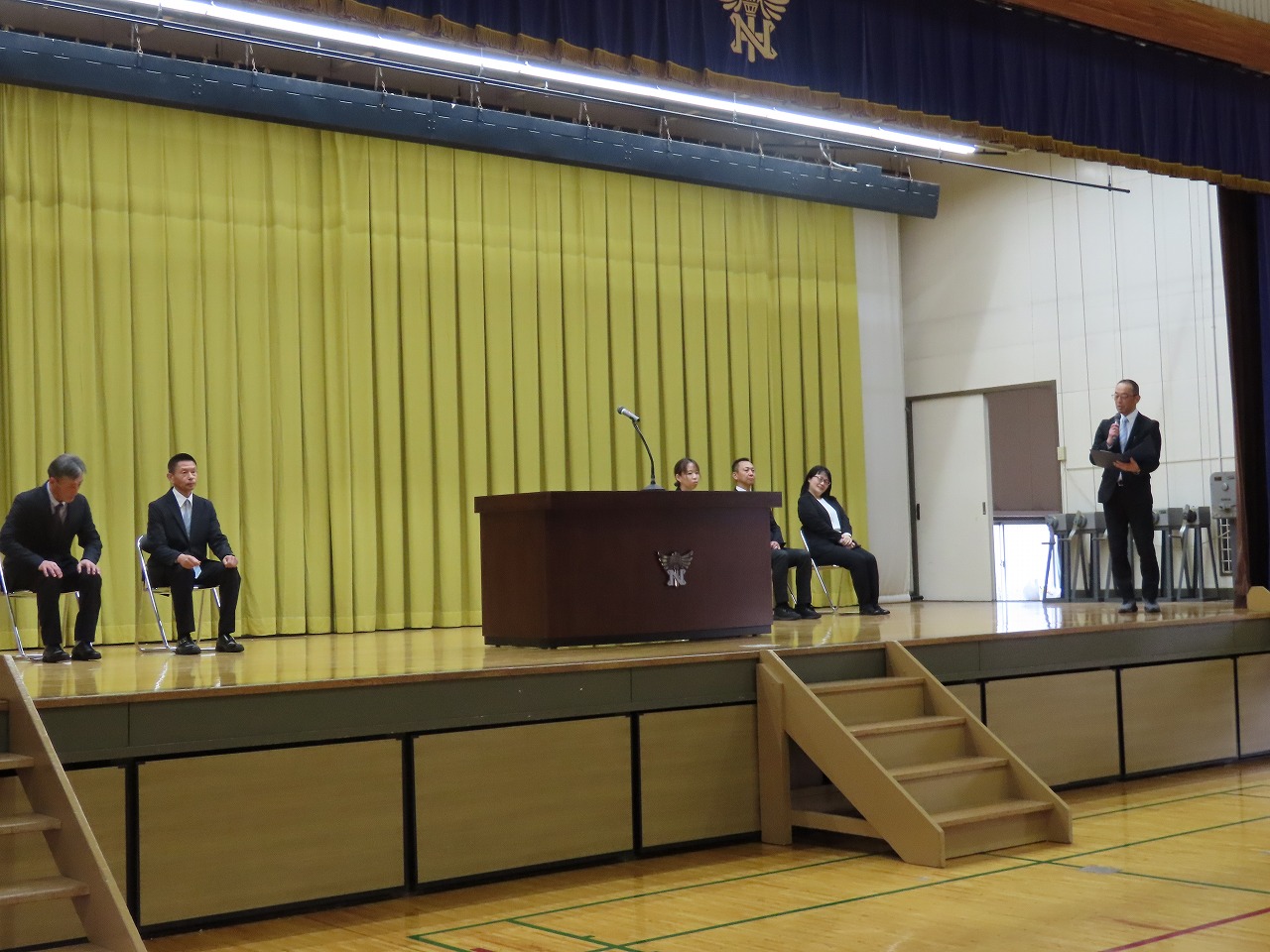 新年度が始まり、生徒は元気に登校しました。新任式が行われ、今年度は4名の先生方が野